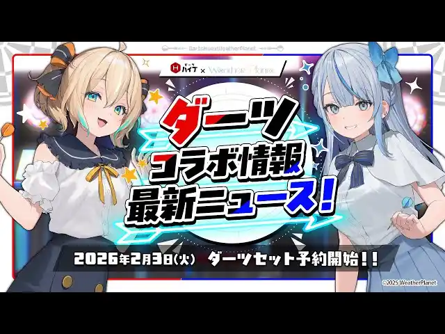 株式会社ハイブクリエーション(本社:宮城県仙台市、代表取締役:齋藤 俊彦/セガサミーグループ)は、雨海ルカ・天晴ひなたによる個人VTuberユニット「Weather Planet」とコラボレーションした企画を2026年2月3日(火)よりスタートいたします。 |