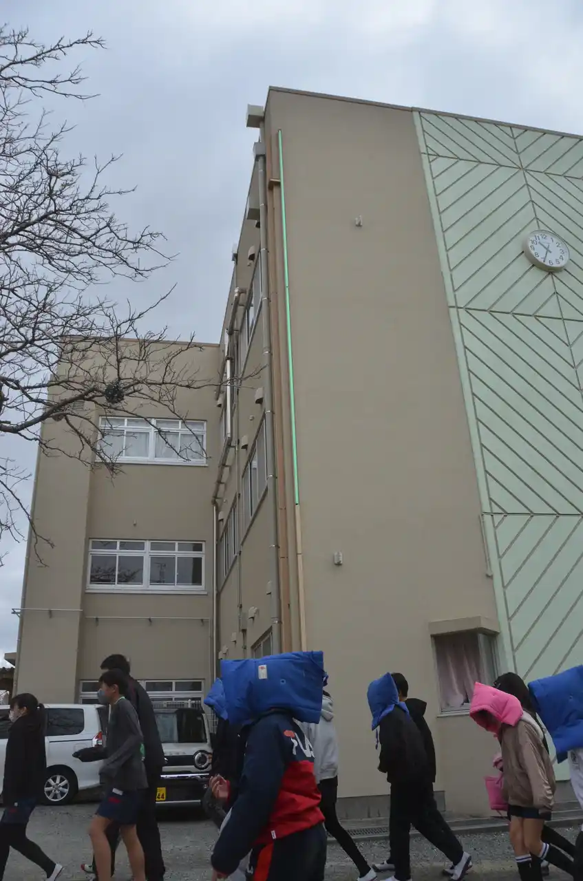 現在、校舎には地震の揺れや建物の傾きを精密に測定するセンサが各所に配置されているほか、屋上には周辺の異常を検知するカメラも設置。収集されたデータは、建物の継続使用の可否を瞬時に判断するために活用されます。 |