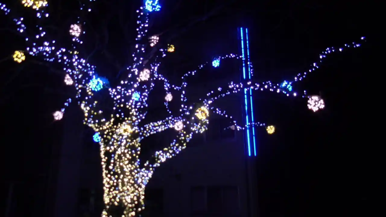 イルミネーションのテーマは、「モチモチの木」(小3国語の教科書に掲載されている物語)。勇気ある子どもだけが真夜中に見ることができる、神々しくまばゆい光を放つ「モチモチの木」を、共同研究に参加する不二サッシ株式会社の支援により実現しました。 |