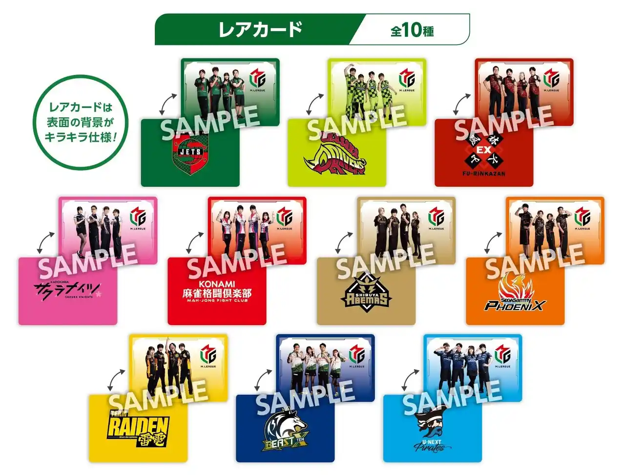 | 株式会社ダブルカルチャーパートナーズ(本社:東京品川区大崎、代表:高谷有花)は、2026年2月6日(金)より、『M.LEAGUEウエハースコレクトボックスvol.2』をローソン店頭、HMV店頭、@ Loppi・HMV&BOOKS online、ローソン・ユナイテッドシネマにて発売いたします。『M.LEAGUEウエハースコレクトボックスvol.2』には、ウエハースとカード(全50種)が1枚ランダムで封入されています。2025-26シーズンに所属している全選手40名の写真入りカード(ノーマルカード)と、各チーム(10チーム)の集合写真カード(レアカード)があり、すべて撮り下ろした素材を使用しています。 | |||||||||||||||||||