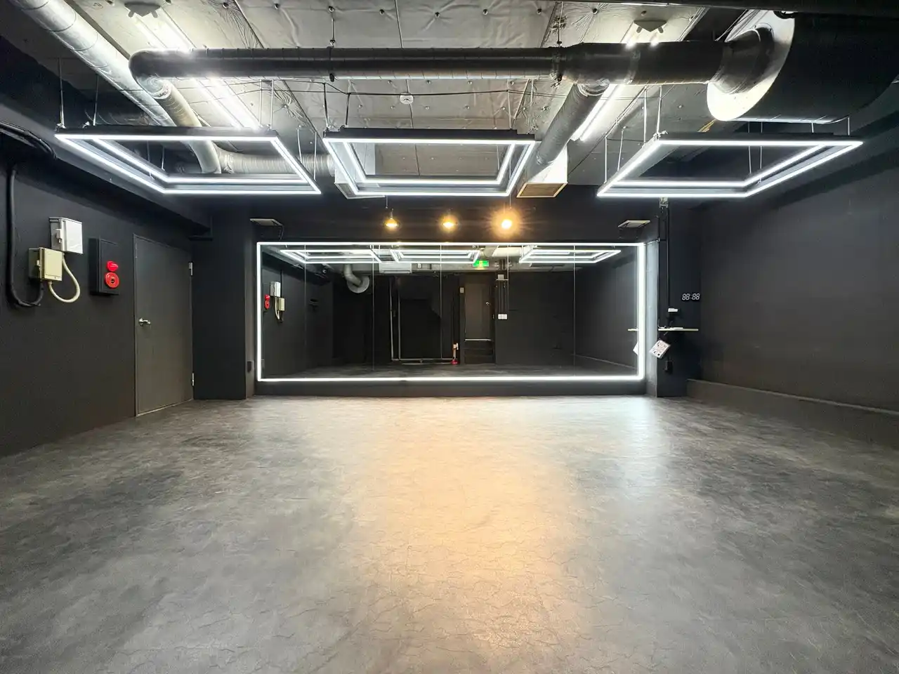 BUZZ横浜東口の最大スタジオ「Ast」(34.0平方メートル )は、ALLBLACK×LEDを搭載した撮影映え抜群の空間!ダンス練習・撮影・配信など、さまざまなシーンで映える環境をご提供します。 |