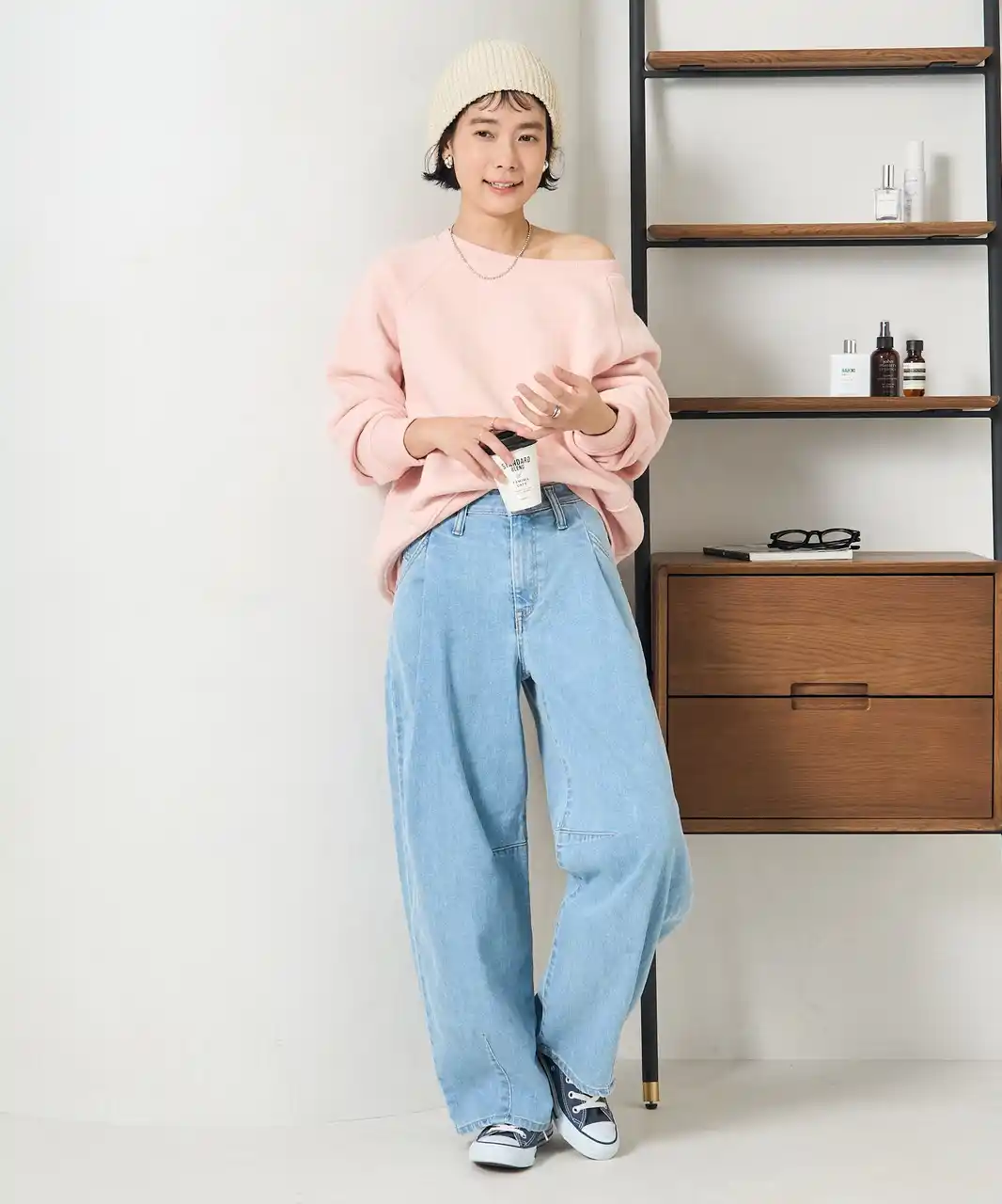 華奢なストラップで、大人も着やすいデニムサロペット。身体のラインを拾いすぎず、まっすぐ落ちるナロー寄りのストレートシルエットですっきりと着こなせます。 |