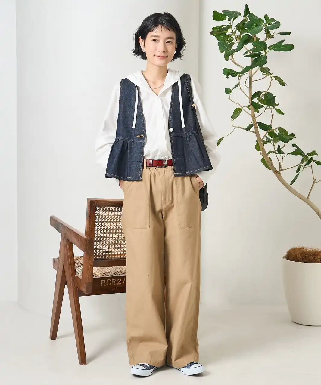 着回し自在、前後2WAYで楽しむ大人ペプラムビスチェ。デニム特有の程よいハリ感で自然とメリハリのあるバランスに! |