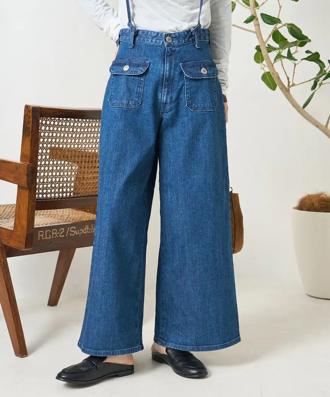 裾に向かってストンと落ちるワイドシルエットが、脚をまっすぐきれいに見せてくれるマリンバギーサロペット。春らしい軽さをプラスしてくれるアイテム。 |