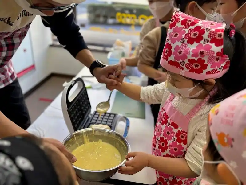 幼少期から、身近な人に感謝を伝える経験は、将来豊かな人間関係を築くための社会的スキル(ソーシャルスキル)の基盤ともなります。お菓子作りの時間には、事前に「誰のために、どんな気持ちで作るか」を皆で共有し、相手を思いやる気持ちや、考えるプロセスを大切にしています。 |