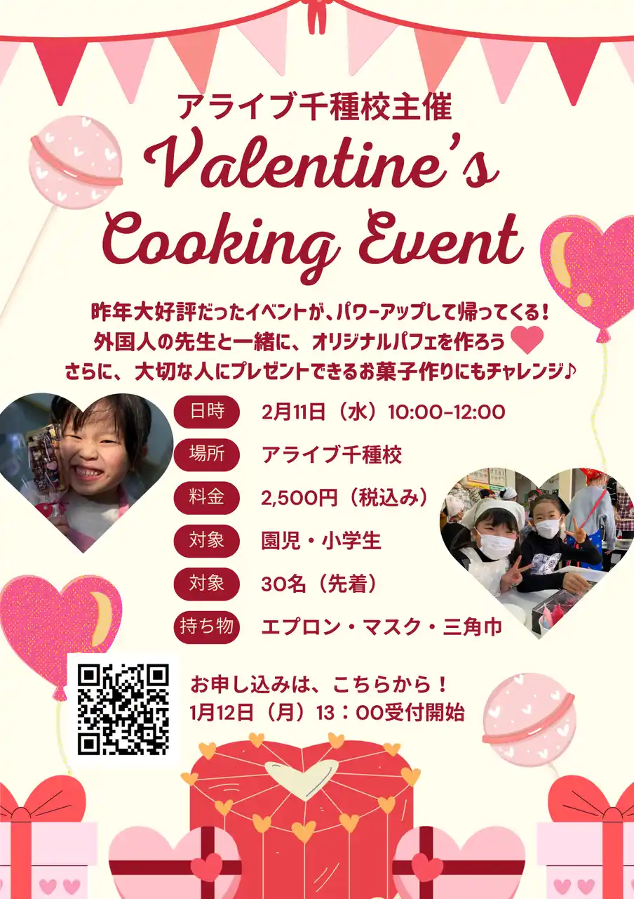 子ども英会話スクールおよび英語保育園を運営する株式会社アライブ(本社:愛知県名古屋市、代表取締役:三井博美)は、2026年2月11日(水・祝)、園児・小学生を対象とした「バレンタイン・クッキングイベント」を開催いたします。 |