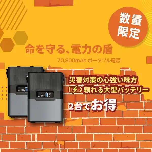 大容量ポータブル電源(70200mAh) 最大300W出力。キャンプや災害時の備えに。 |