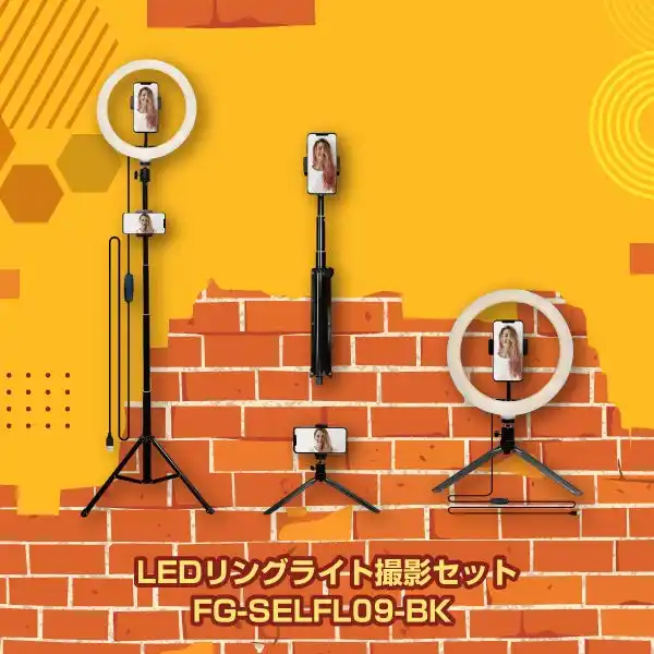 多機能 4WAY LEDリングライト 三脚、卓上、自撮り棒、スマホスタンドの1台4役。 |
