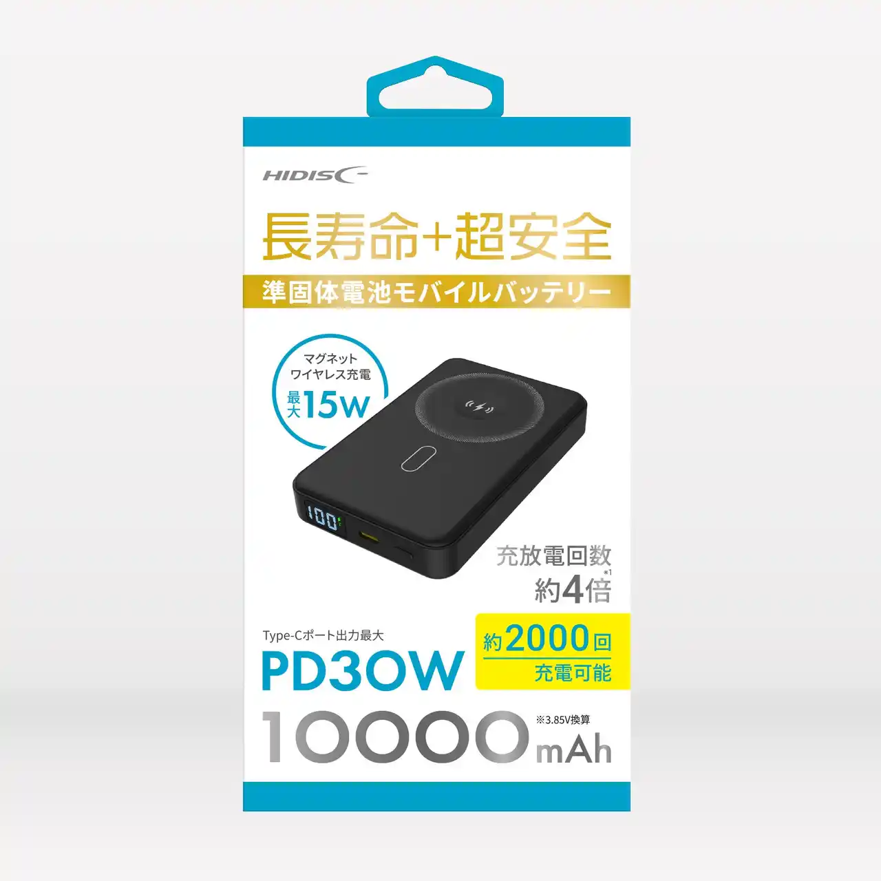 株式会社磁気研究所(本社:東京都千代田区、代表取締役:齋藤邦之)は、 昨年メディアや雑誌で多く紹介された 長寿命+超安全設計の「準固体電池モバイルバッテリー/HD4-SSMBTC30W10DSBK」 の再販を開始します。本製品は、最新の準固体リチウムイオン電池を採用し、 高い安全性・低発熱性能・高い利便性 を実現した次世代モバイルバッテリーです。 |