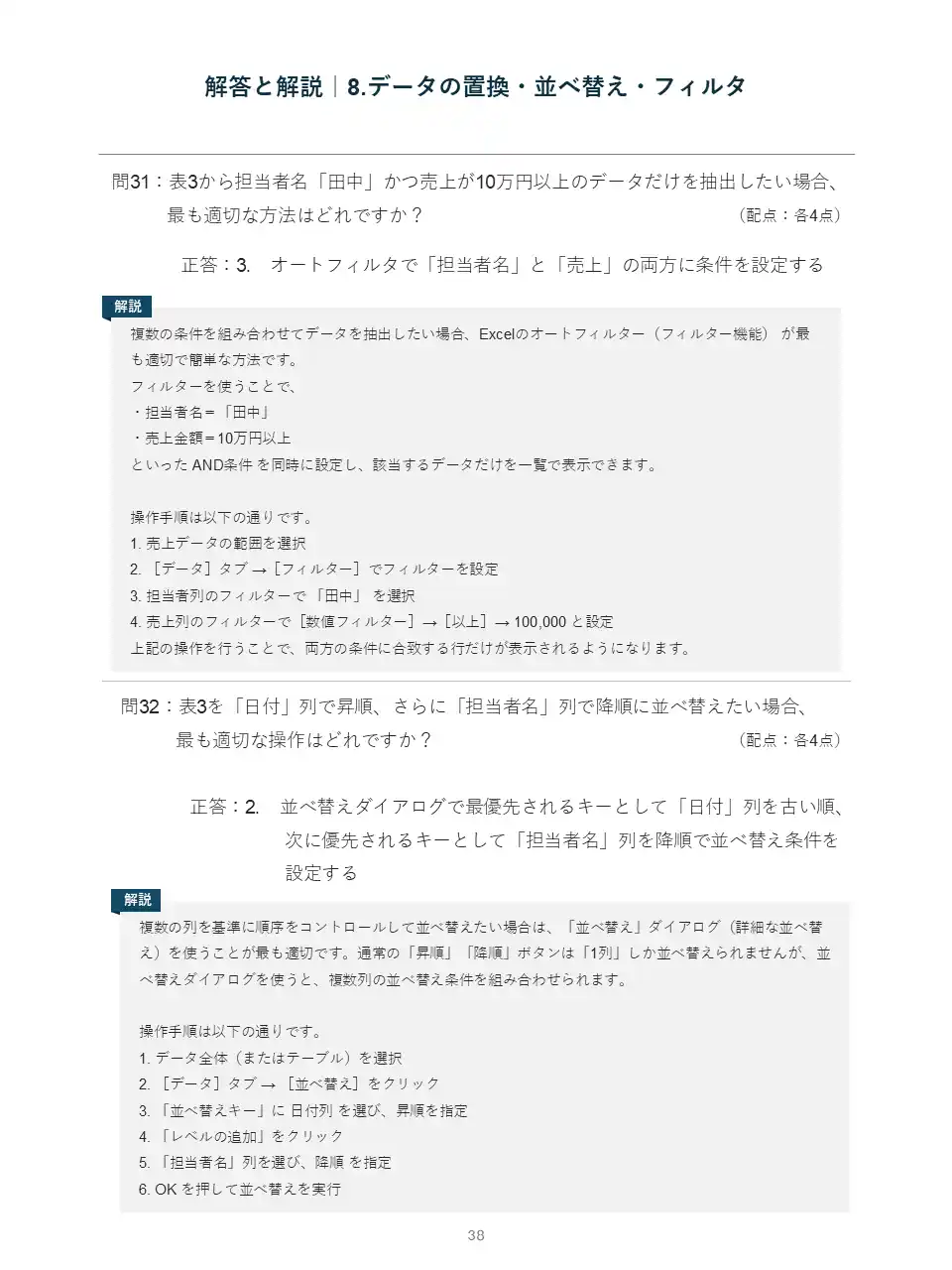 本診断は単なる知識を問うクイズではなく、実際の売上データやテーブル操作を想定した「実務再現型」の診断です。(以下画像は設問・解説の一部抜粋です) |