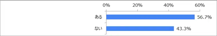 「ある」が56.7%、「ない」が43.3%で、就職活動で生成AIを利用したことがある留学生の方が多い結果となりました。 |