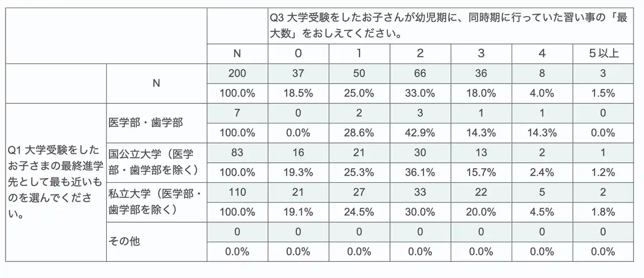 | 本調査は、幼児期に行っていた習い事の内容や数と、大学受験を終えた後の評価・実感との関係を明らかにし、幼児期の過ごし方を考える一助とすることを目的としています。 | |||