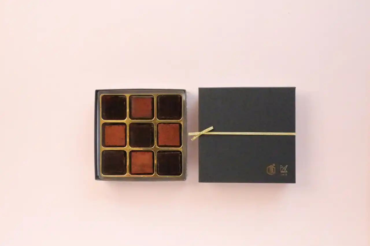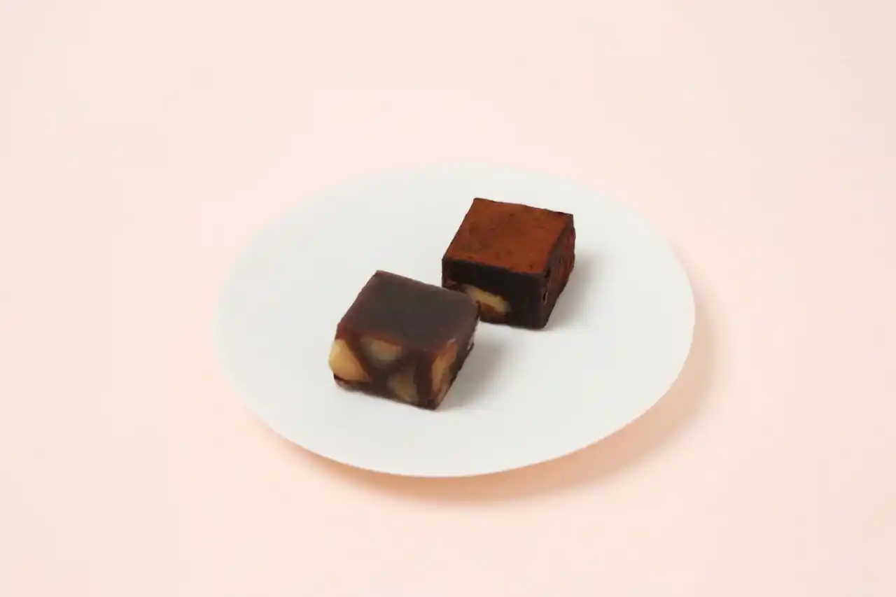 京都のショコラトリー「dari K」とのコラボレートにより誕生した、ひと口サイズの羊羹です。 波照間島産の黒糖を使用した羊羹に、カカオ豆・マカデミアナッツ・沖縄の塩を合わせた〈黒糖羊羹〉と、羊羹にカカオ豆・マカデミアナッツ・オレンジピール・和歌山産みかんの花の蜂蜜を合わせた〈小豆羊羹〉の2つのお味をお詰めしました。 |