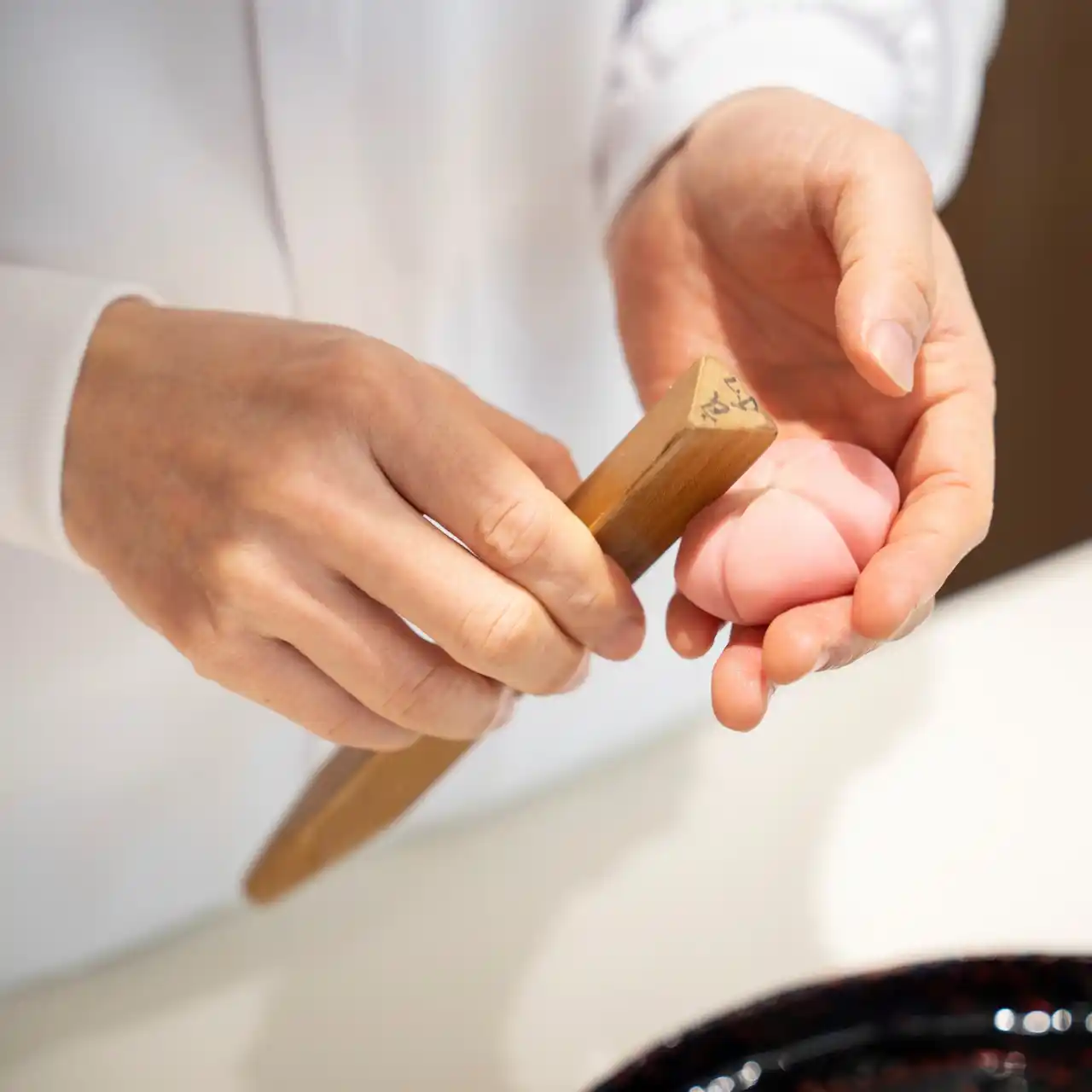| 生菓子をお作りいただいた後は、季節に合わせた和三盆の実演をご覧いただき、お客さまに実食いただきます。出来立ての和三盆の口どけをお愉しみください。和三盆の意匠はお任せとなります。 | |||||||||||||||