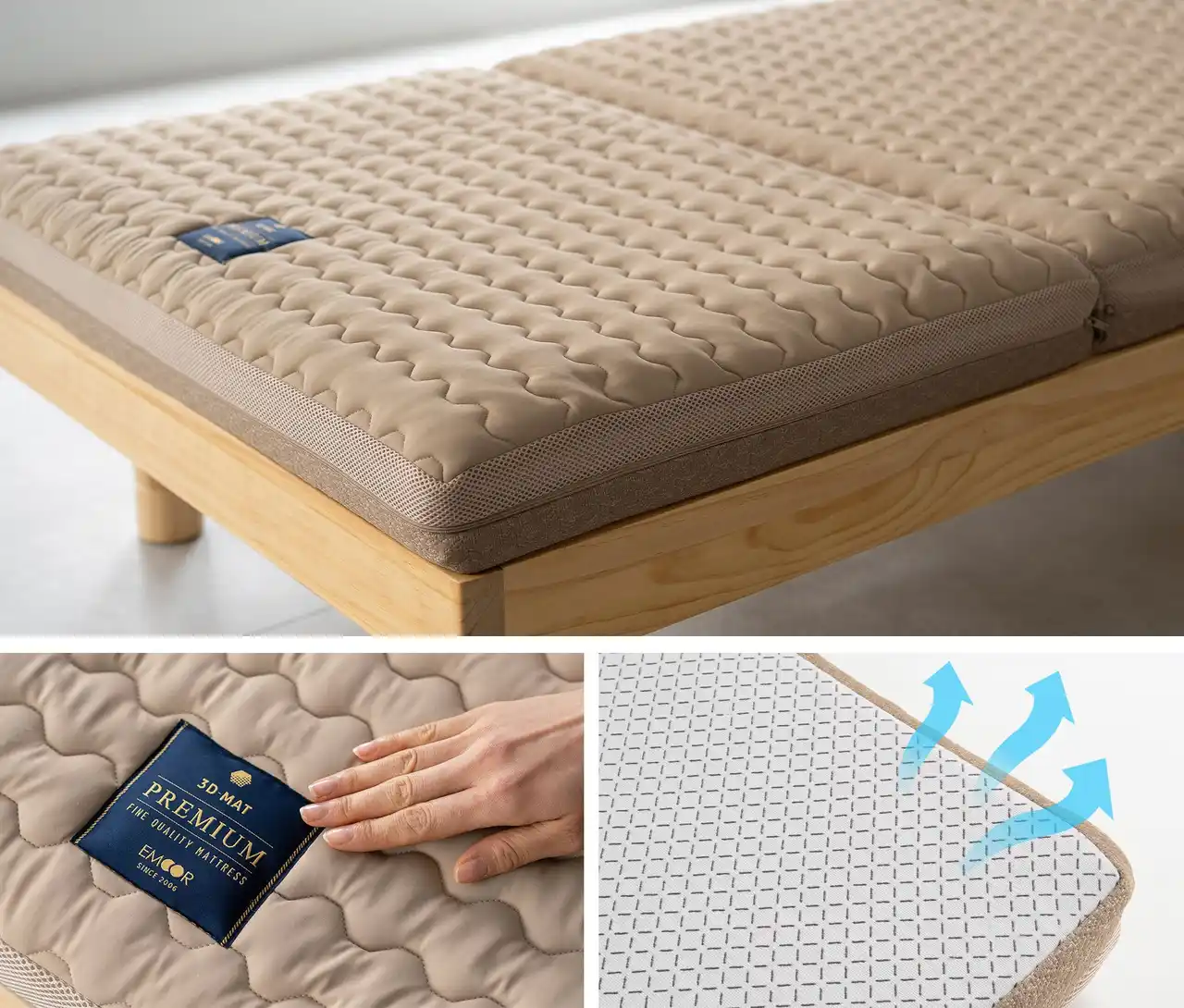 「清潔に、心地よく眠る」という新しいスタンダードを。3D-MAT プレミアムは、毎日の睡眠をより快適で安全な時間へと導きます。 |