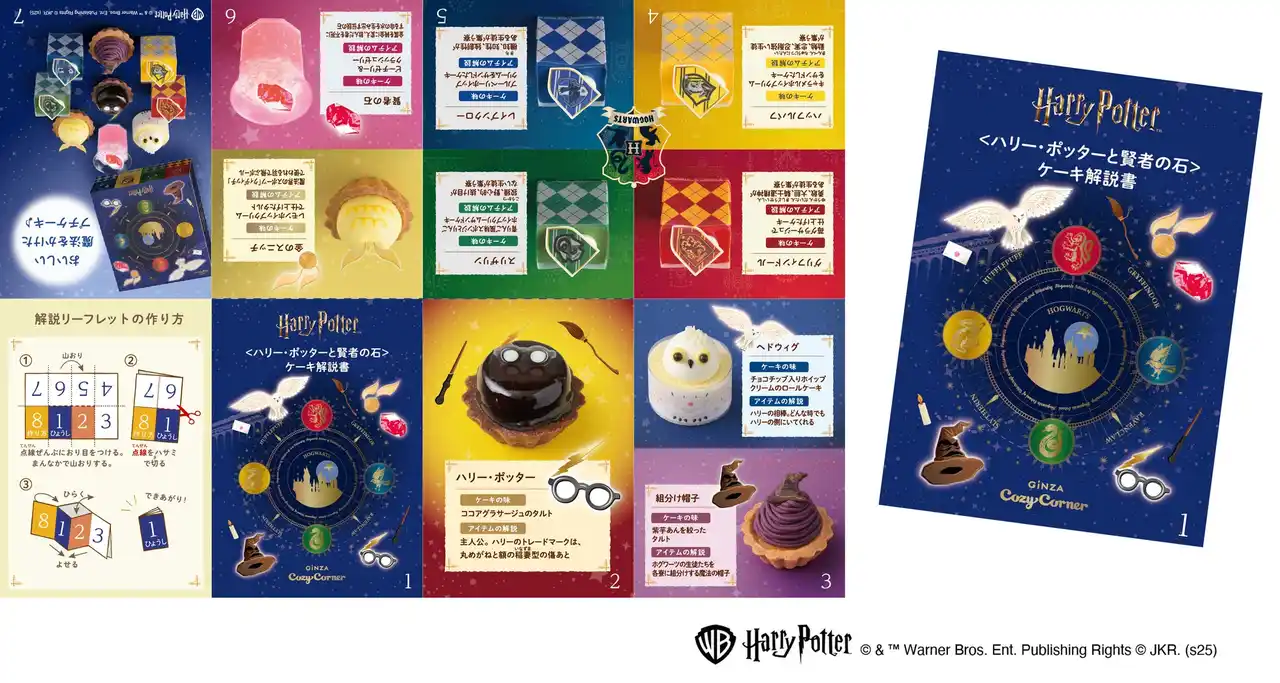 「<ハリー・ポッターと賢者の石>コレクション(9個入)」を購入された方に、ケーキの味や物語に登場するアイテムのポイントを紹介した「<ハリー・ポッターと賢者の石>ケーキ解説書」リーフレットをプレゼント。 |