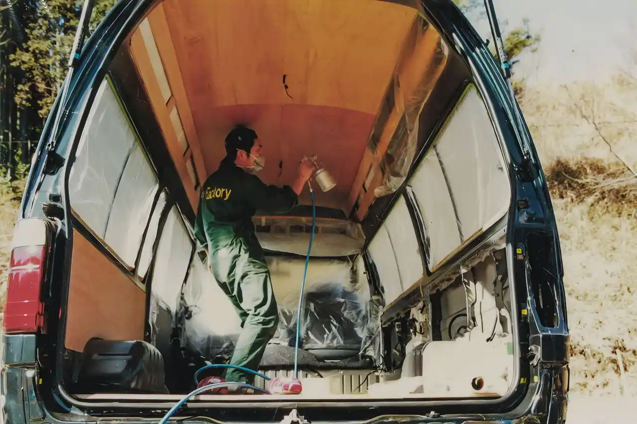 | トイファクトリー製のキャンピングカーには、このGAINAを車体全体に施工することで、世界屈指の断熱性能を実現しています。 | ||||||||||||