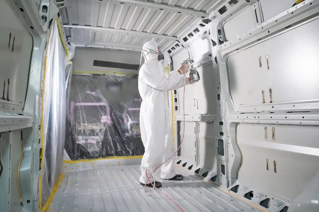 | 断熱セラミックGAINAを車体ボディ内部の細かい内側にまでスプレー塗装する事により、約0.8mmの非常に薄い塗膜で住宅用断熱材(グラスウール)100mm相当の高い断熱効果が得られます。 | ||||||||||||