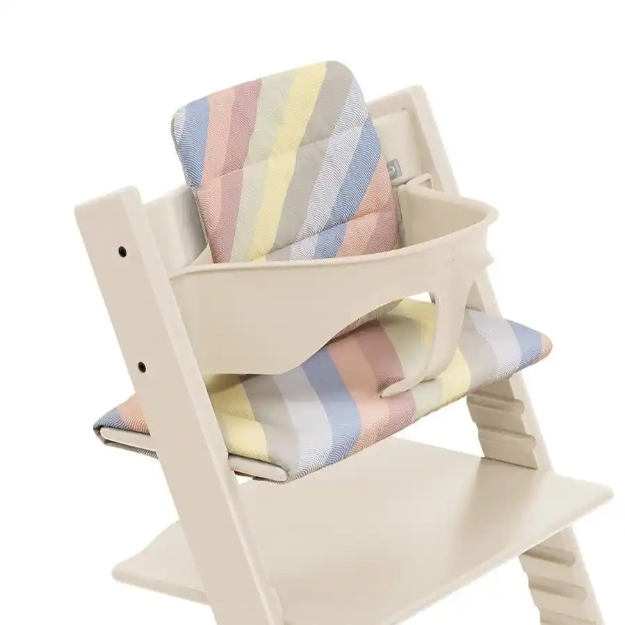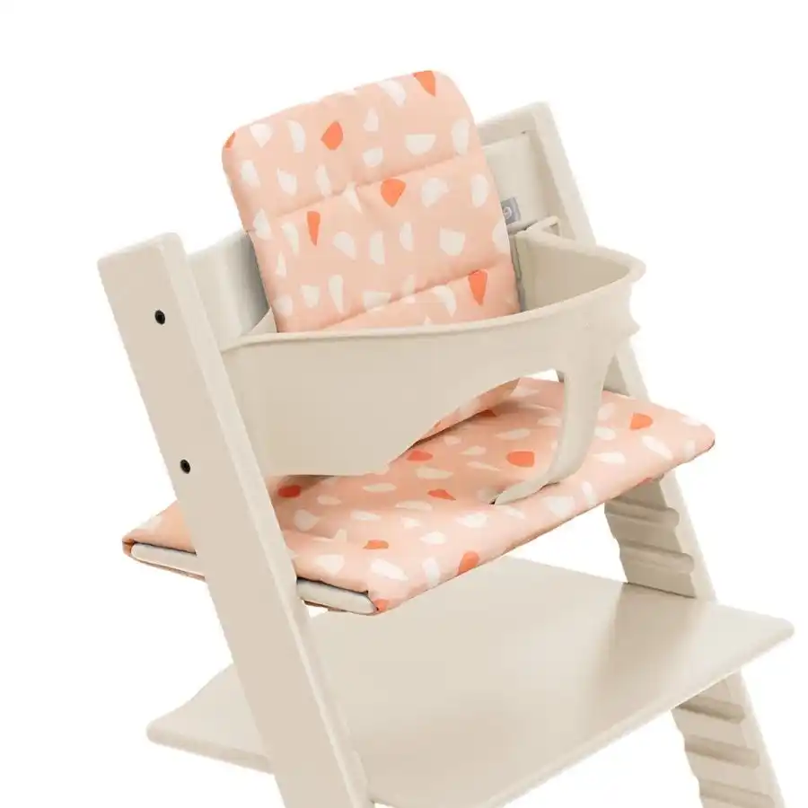 トリップ トラップに完璧にフィットするよう再設計され、2025年9月に発売されたトリップ トラップ クッションからは、新色が4色登場。椅子にしっかりと固定する形状に改良されつつ、スリムでアイコニックなチェアともシームレスに調和する設計で、機能性と美しさの両立が追求されたアクセサリーです。 |