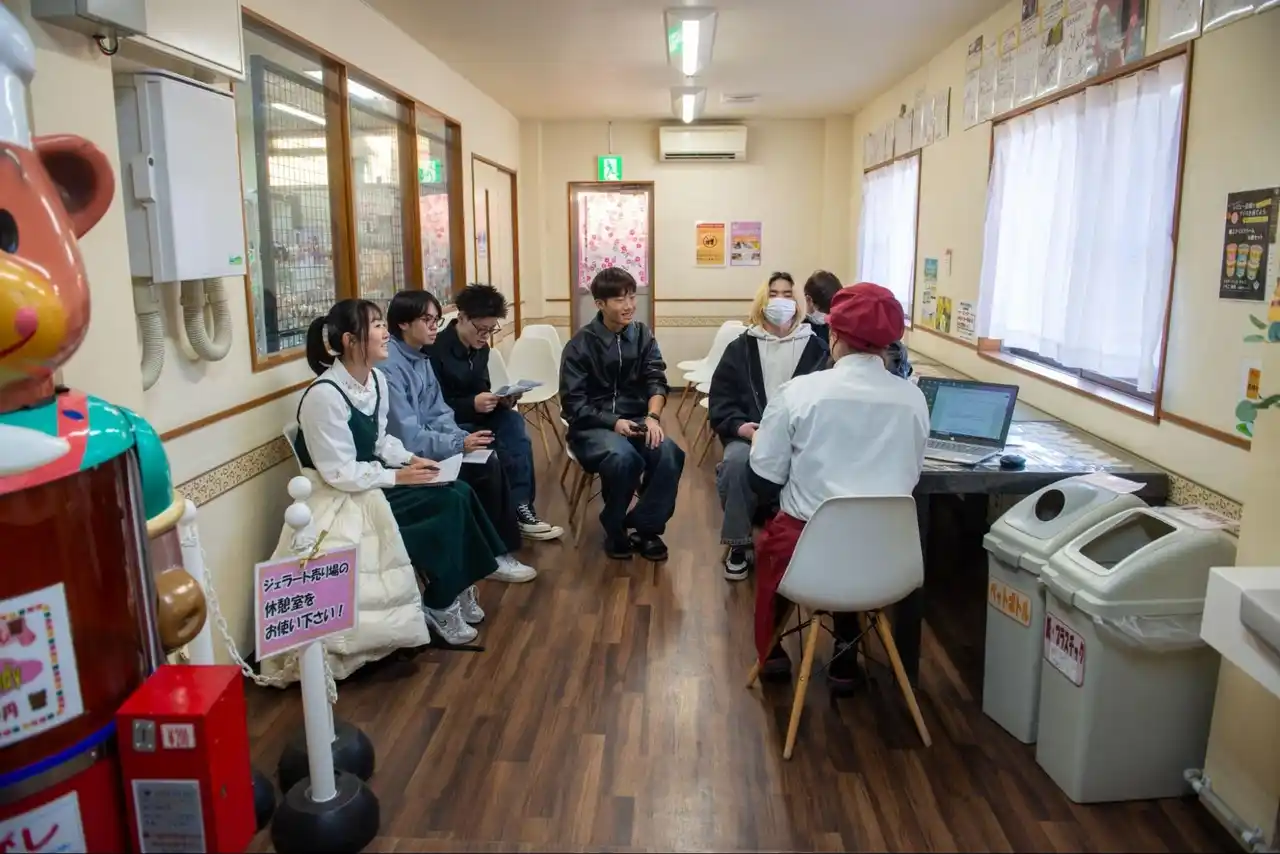 2025年度は、8月に開業した「道の駅 マチテラス日進」を運営する株式会社ファーマーズ・フォレスト様や、学生の通学の足としても利用されている「リニモ」を運営する愛知高速交通株式会社様をはじめ、昨年から本格的にスタートした日進市商工会様の「にっしんブランド」、そこに含まれる「ヴェールの小路」(愛知牧場様)、「お月見どろぼうさんのわすれもの」(ハコとルコ様)、「香久山ロール」(パティスリーミルグレイ様)といった魅力的なグルメを紹介する動画を作成し、活用法を提案するプレゼンテーションを実施しました。学生たちは訪問先の企業で働く人たちへのインタビューを通じて、現場の課題や想いを理解し、そこから創造的なアイデアをチームの広報動画として表現しました。 |