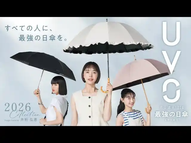 『UVO』は、傘専門ブランド『Wpc.』が手掛けるブランドとして、長年培ってきたノウハウを集約して開発した5層の特殊構造生地を使用した高機能日傘ブランドです。“すべての人に、最強の日傘※1を。”をコンセプトに、2021年の発売から5年でシリーズ累計販売数は61万本※2を突破。第三者検査機関において実証された完全遮光100%※3・UVカット率100%※4・UPF50+※5、高い遮熱性・耐久性・撥水性(撥水度は最高等級5級※6)と、豊富なバリエーションを兼ね備えた”最強の日傘※1”として、多くの方に選ばれ続けています。 |