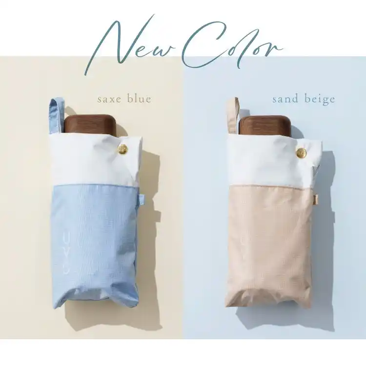 夏の定番サックスブルーと、肌なじみが良いサンドベージュが新色として登場。トレンドを押さえた落ち着いたくすみカラーです。シャンブレー風の夏らしい生地は見た目も涼しげ。 |