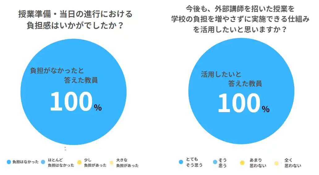 学校の負担を増やさずに実施できる仕組みを活用したいと思いますか? 「活用したい」と回答した教員:100% |