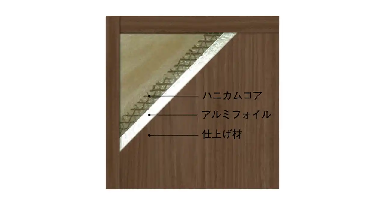 | 製品本体には、軽量なハニカムコア芯材を採用。 | ||||
