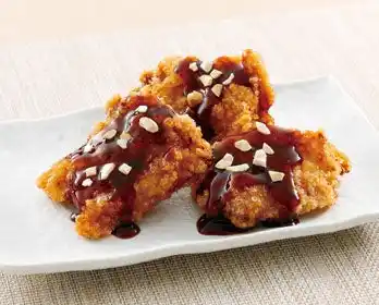 | 香酢を配合した、香り豊かな黒酢あんをたっぷりかけた「黒酢あんから揚げ」が期間限定で新登場! | |||||||||||||||||