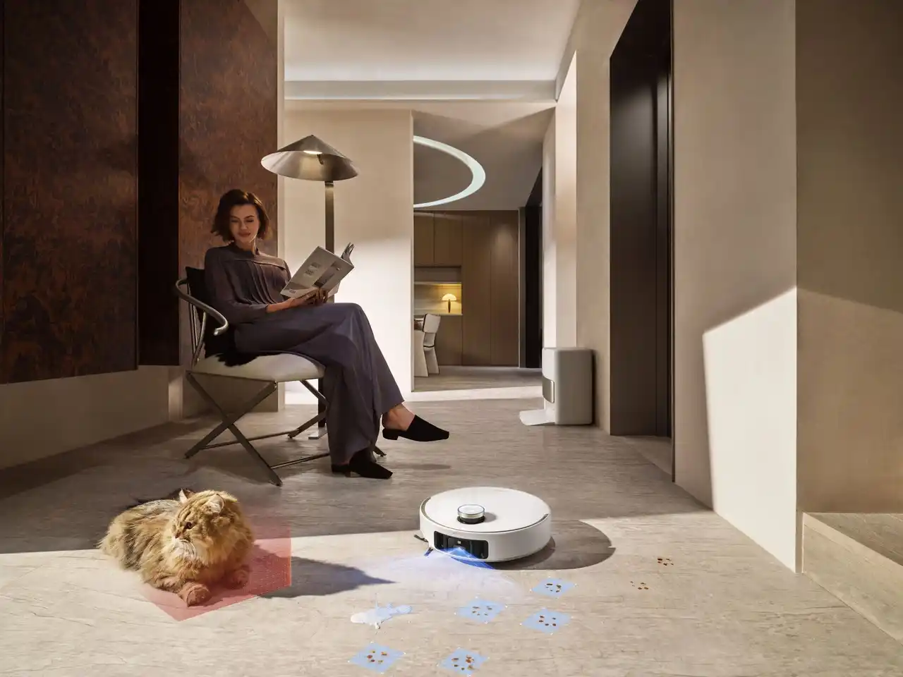 AIにより、200種もの物体や障害物を認識・回避しながら掃除を行うことが可能です。動的な障害物も認識し、動く人やペットをリアルタイムで検知しスマートに回避します。通行を感知すると4秒間待機し、通過したら、すぐに掃除を再開できます。 |