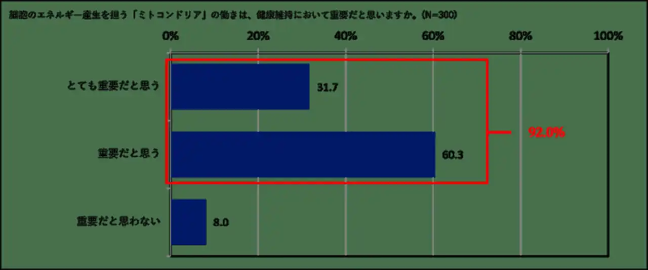 細胞のエネルギー産生を担う「ミトコンドリア」の働きが、健康維持において重要と考える医師は92.0% |
