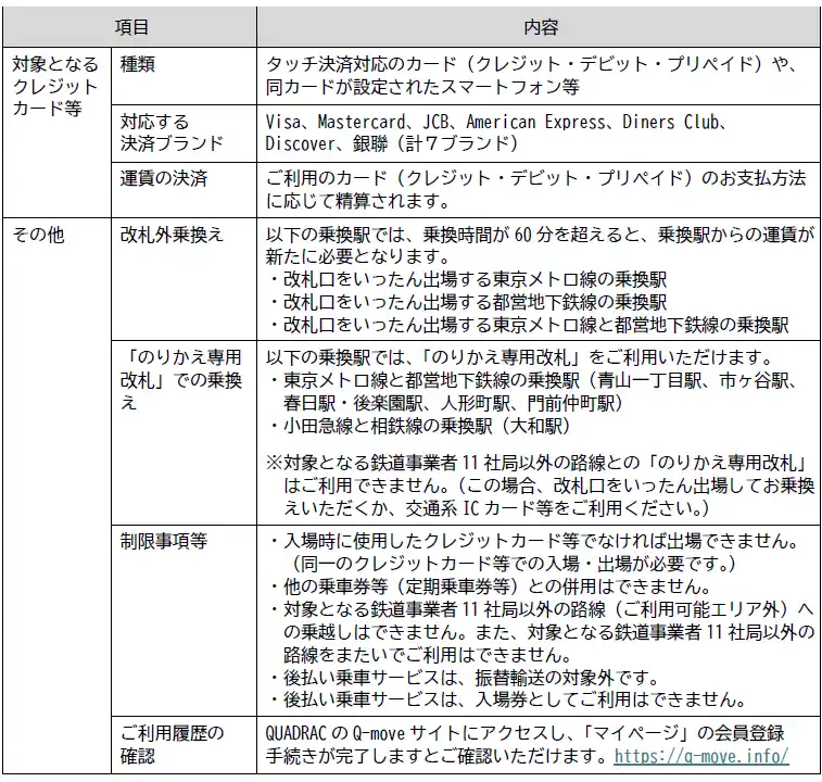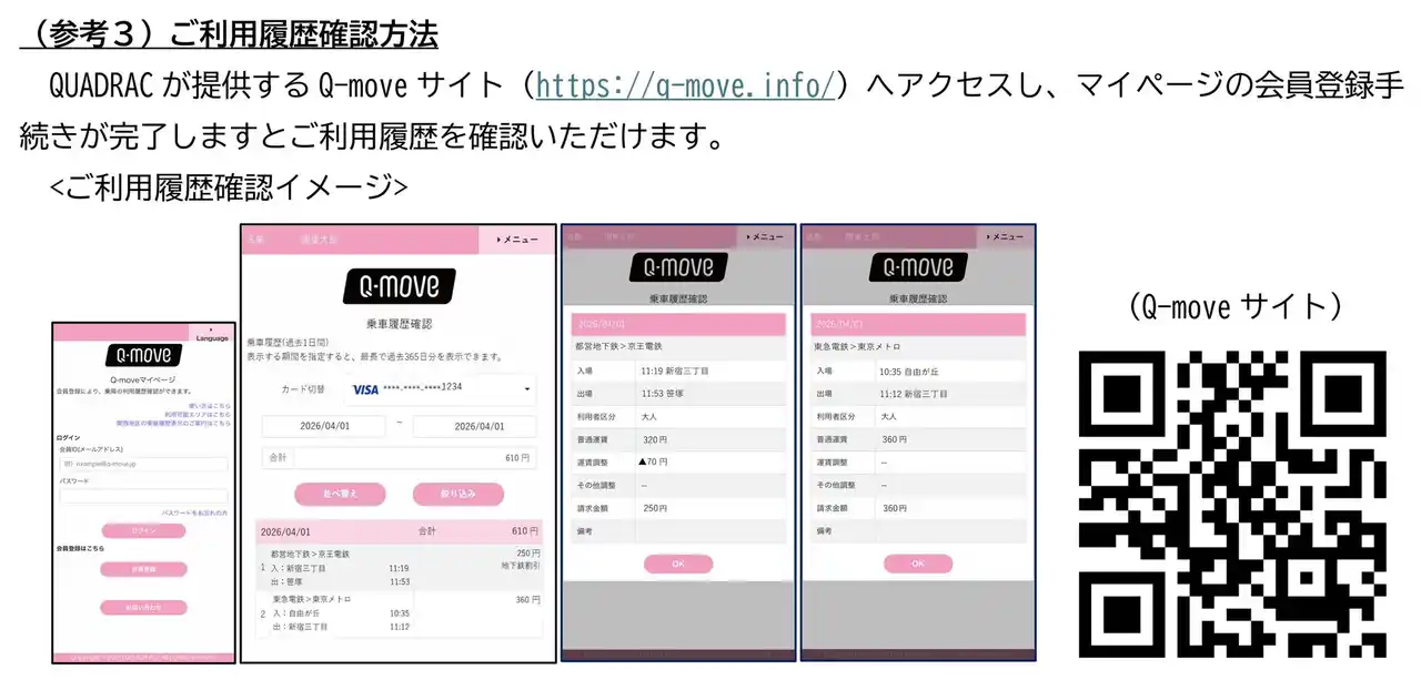 この新たな運賃計算システムと、三井住友カードが提供する公共交通機関向けソリューション「stera transit」及びQUADRAC が提供するSaaS型プラットフォーム“Q-move”が連携することにより、関東での後払い乗車サービスの相互利用を実現いたします。 |