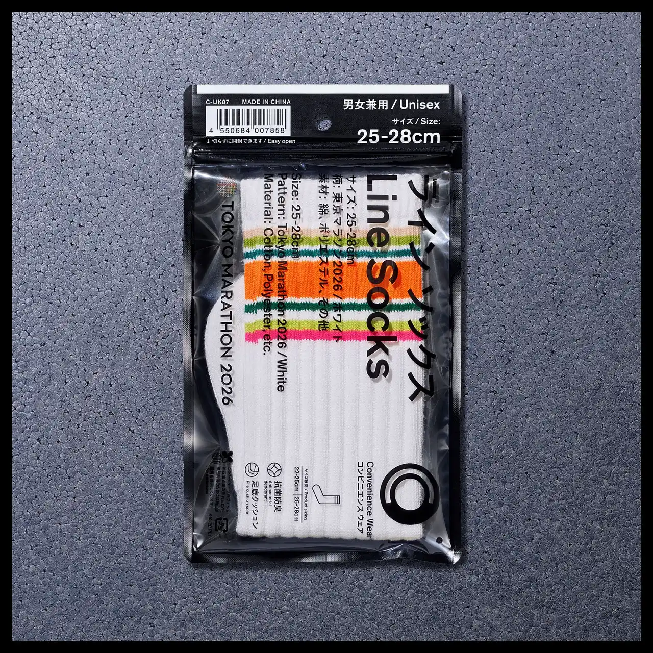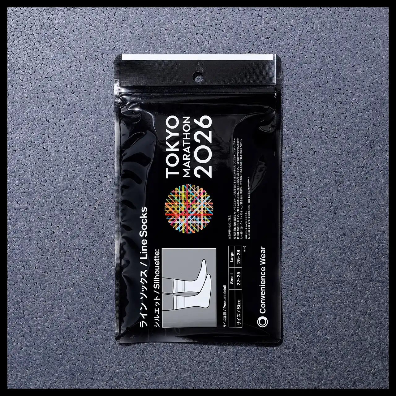 【内容】「東京マラソン2026」をモチーフに配色したラインソックスです。 |