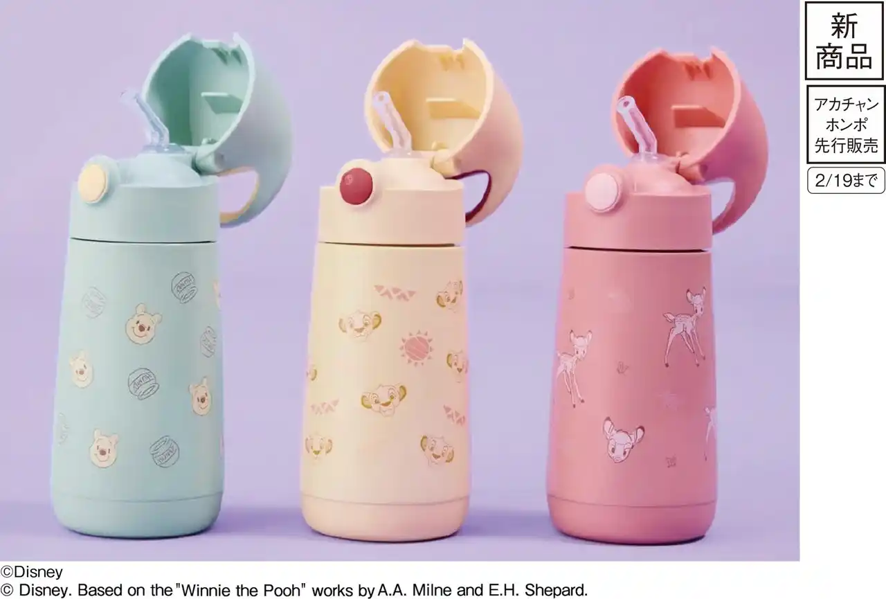 b.box「シッピーカップ」で人気のディズニーデザインがステンレスボトルでも登場。水筒デビューや入園準備におすすめです。 |
