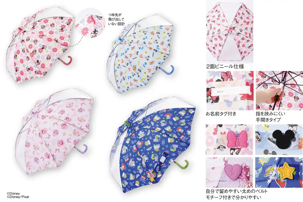 つゆ先がとがってない人気のフチまる傘のディズニーデザイン。傘デビューにぴったりの商品です。 |