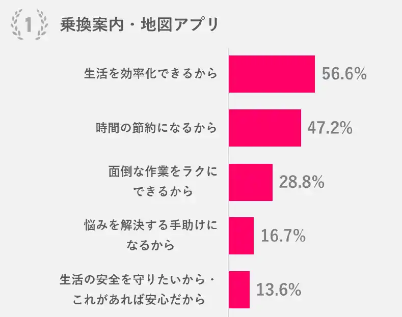 TOP3は「乗換案内・地図」「天気予報・防災」「スマホ決済」生活密着型のアプリで日常を効率化