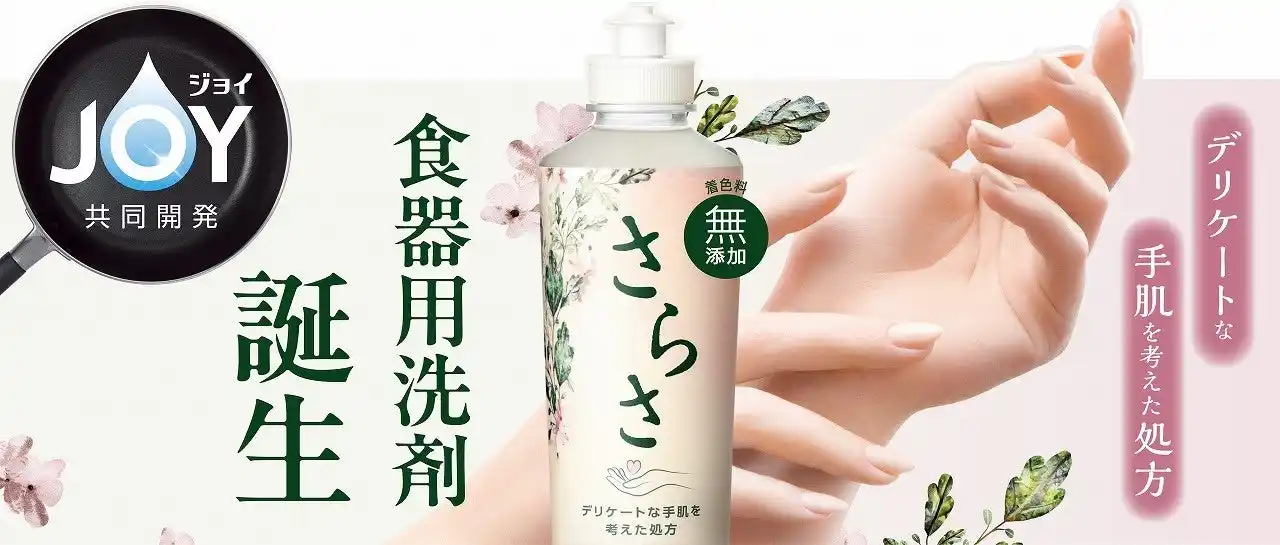 近年、手は年齢が表れやすい部位として、日常的にハンドケアやネイルを楽しむなど、手元の美しさを意識する生活者が増えています。一方、食器洗いでは「洗い上がりに妥協できない」という意識が根強いので、手肌のことを考えた洗剤は「洗浄力が弱そう」という印象から選ばれにくく、洗浄力の高い洗剤を選ぶ傾向が続いています。また、手袋を使用する方が増えていますが、汚れ落ちや洗剤残りが手の感触から分かりにくく、使いにくいと感じる方も少なくありません。このような「手肌を大切にしたい」と考える方々に応えるため、無添加*¹洗剤ブランド『さらさ』から、ジョイと共同開発した「さらさ 食器用洗剤」を新たに発売します。 |