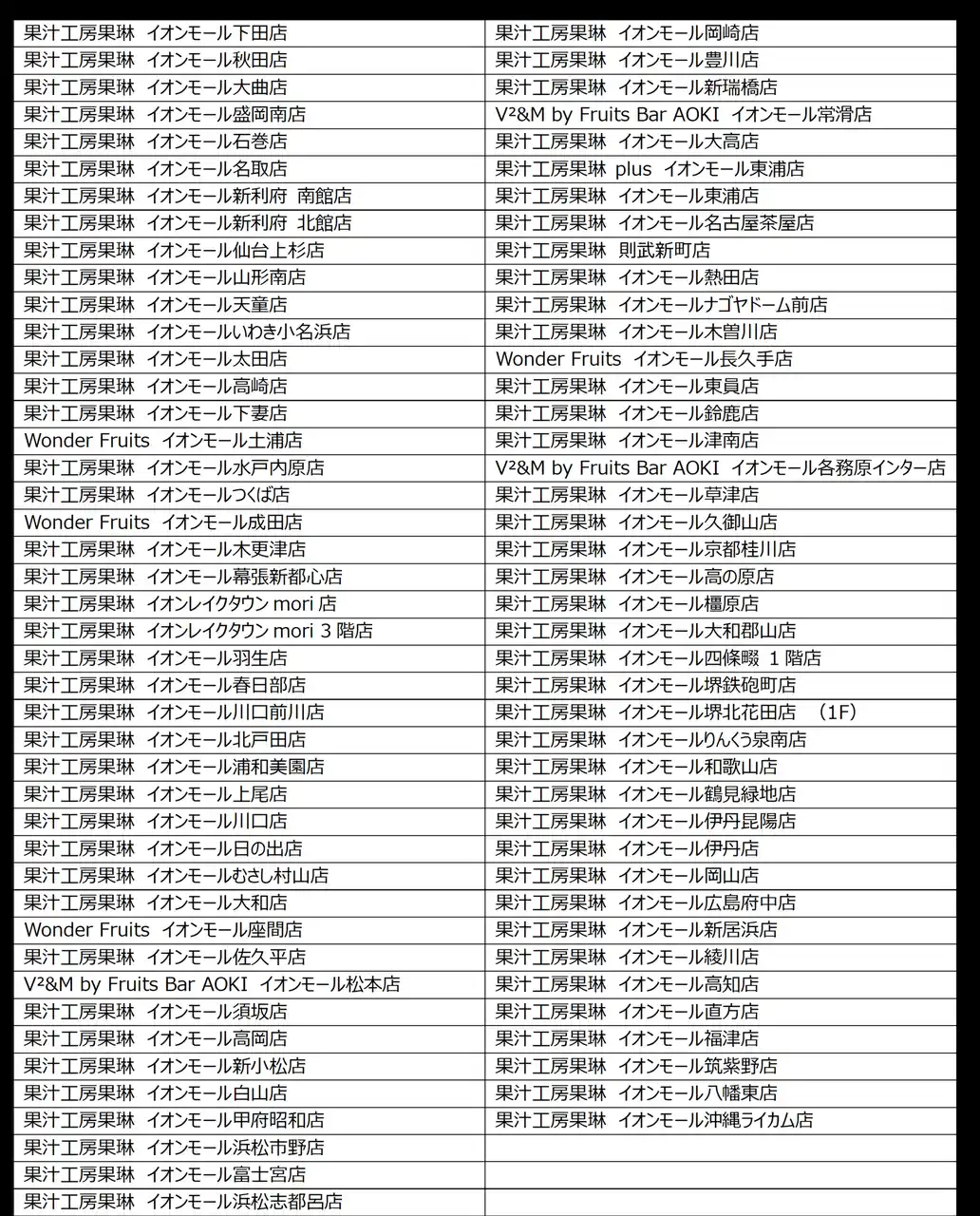 ♦販売店舗:全国の果汁工房果琳、Wonder Fruits、V²&M 85店舗限定 |