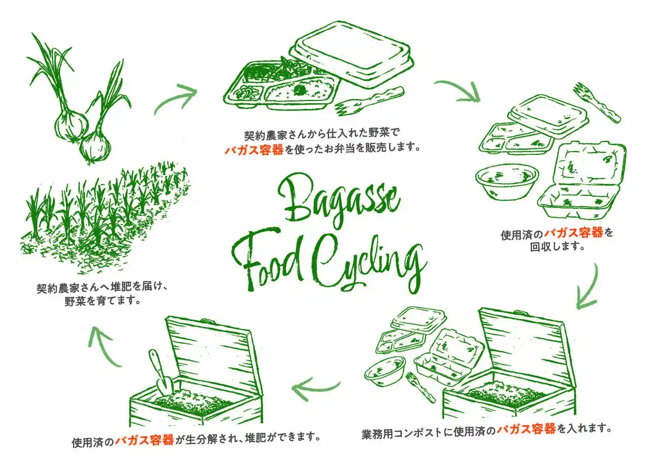 バガス(サトウキビ搾汁後の繊維)を原料とする本容器は、環境負荷の低減と使い勝手の両立が評価され、イベント内の全出店店舗で採用されます。また、今回は使用済容器の一部を回収、洗浄、破砕し、土壌改良剤として使用する実証実験も予定しております。これは、当社が提唱する循環型消費モデル「バガスフードサイクリング」を実現し、CO2排出量削減をはじめとする環境負荷軽減への貢献を前進させる取り組みとなります。 |