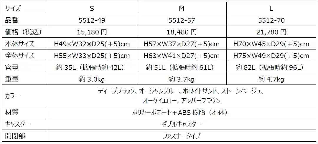 “旅をもっと身近に。”をパーパスに掲げ、スーツケースをはじめとした旅用品を企画・販売する総合メーカー、株式会社ティーアンドエス(本社:埼玉県越谷市、代表取締役:斉 真希、以下当社)は、主力トラベルブランド『LEGEND WALKER(レジェンドウォーカー)』の人気スーツケース『EARTH(アース)』と『MALIBU(マリブ)』に、新色を追加します。 |