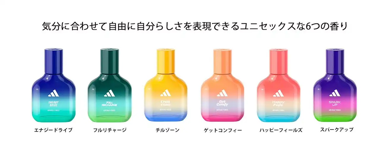 アディダスのVibesフレグランスは、ただまとうだけでなく、心で“感じる”香りへと進化しています。 |