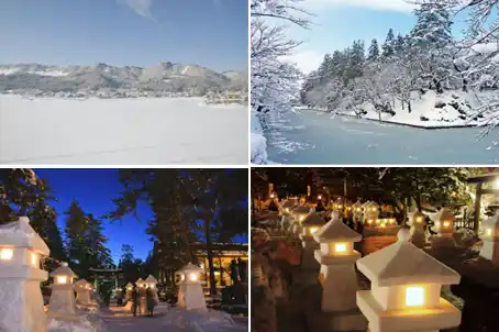雪国の朝は静けさと澄んだ冷たさに包まれ、気持ちのよい時間に。そして夜は灯りの時間へ。上杉雪灯篭まつりの幻想的な光に包まれた世界は、朝とは違う趣深い時間を楽しめます。 |