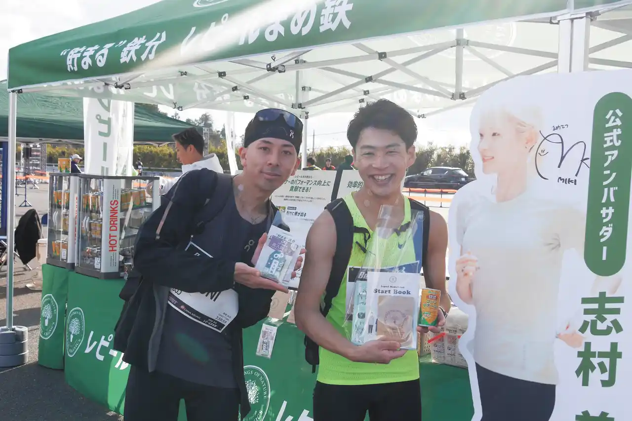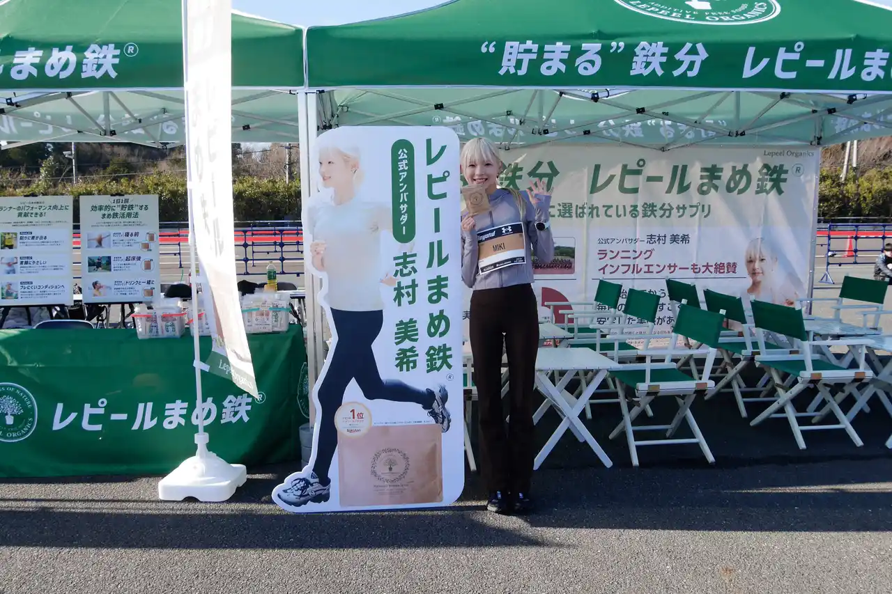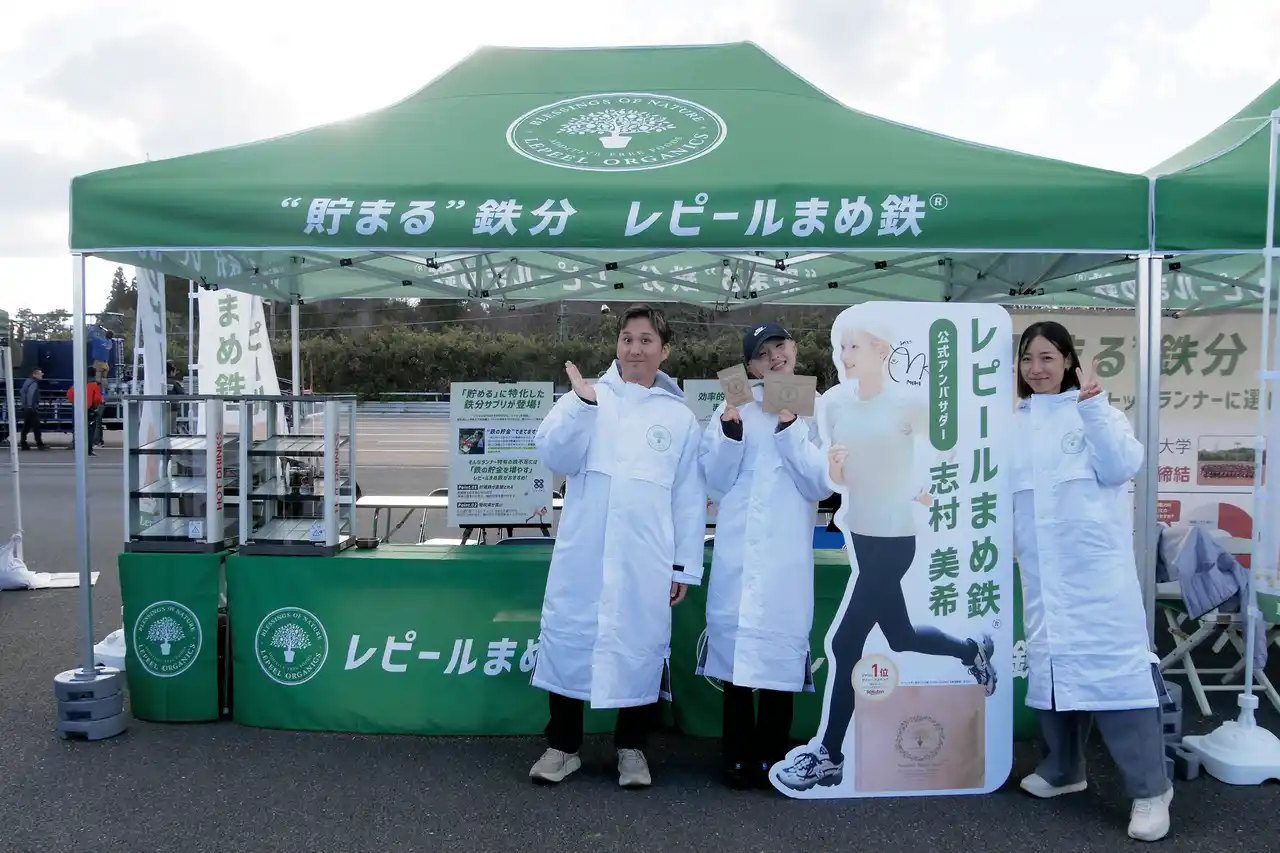 レピールオーガニックスは、体内に蓄えられる鉄分“フェリチン鉄“を配合したサプリメント「レピールまめ鉄」の体験ブースを展開。ランナーと直接コミュニケーションを行い、日々のコンディションづくりにおける鉄分補給の考え方や、競技志向ランナーが抱える栄養面での関心や課題について理解を深める機会としました。