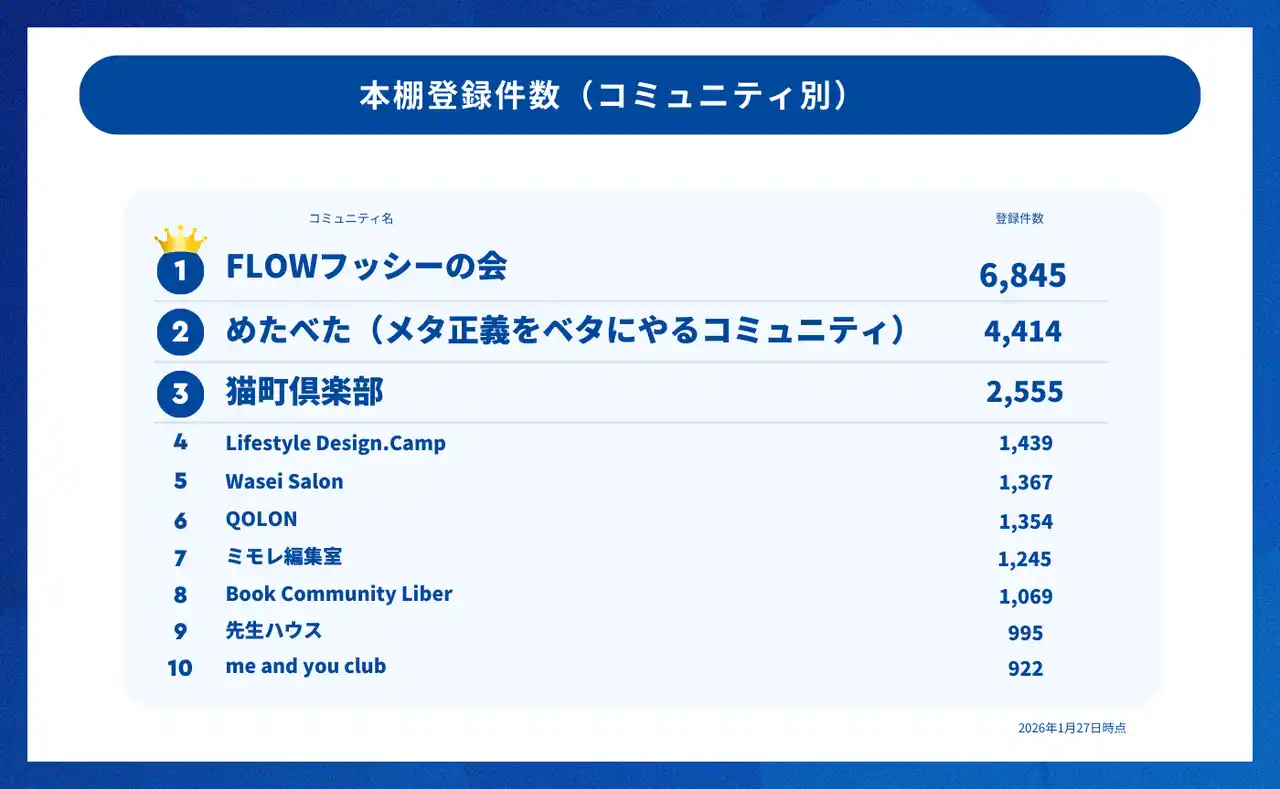 本に限らないテーマのコミュニティがTOP10に入っています。