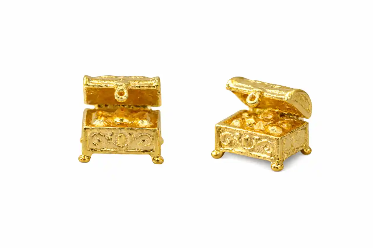 夢と希望が詰まった宝箱を 指先サイズの純金ミニチュアとして表現しました |