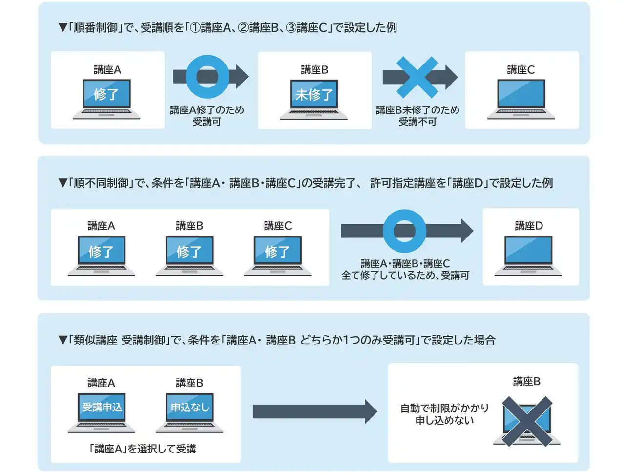 | 新機能「類似講座 受講制御機能」の特長 | |||||||||||||||