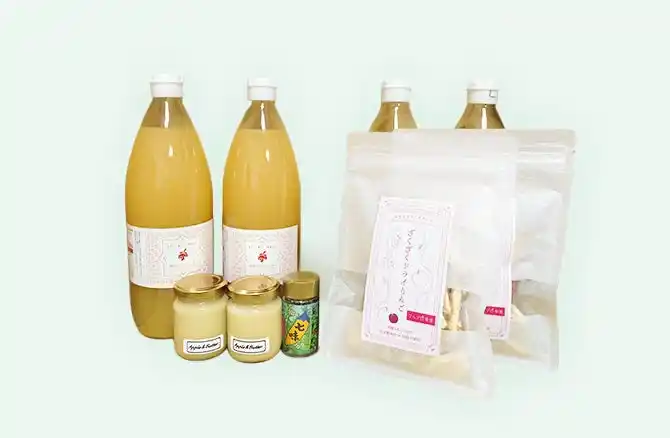 フルプロ農園「葉とらずりんごで作った信州りんごジュース4本・りんごバター2点・ざくざくドライりんご2点・りんごスパイスのセット」を贈呈します。 |