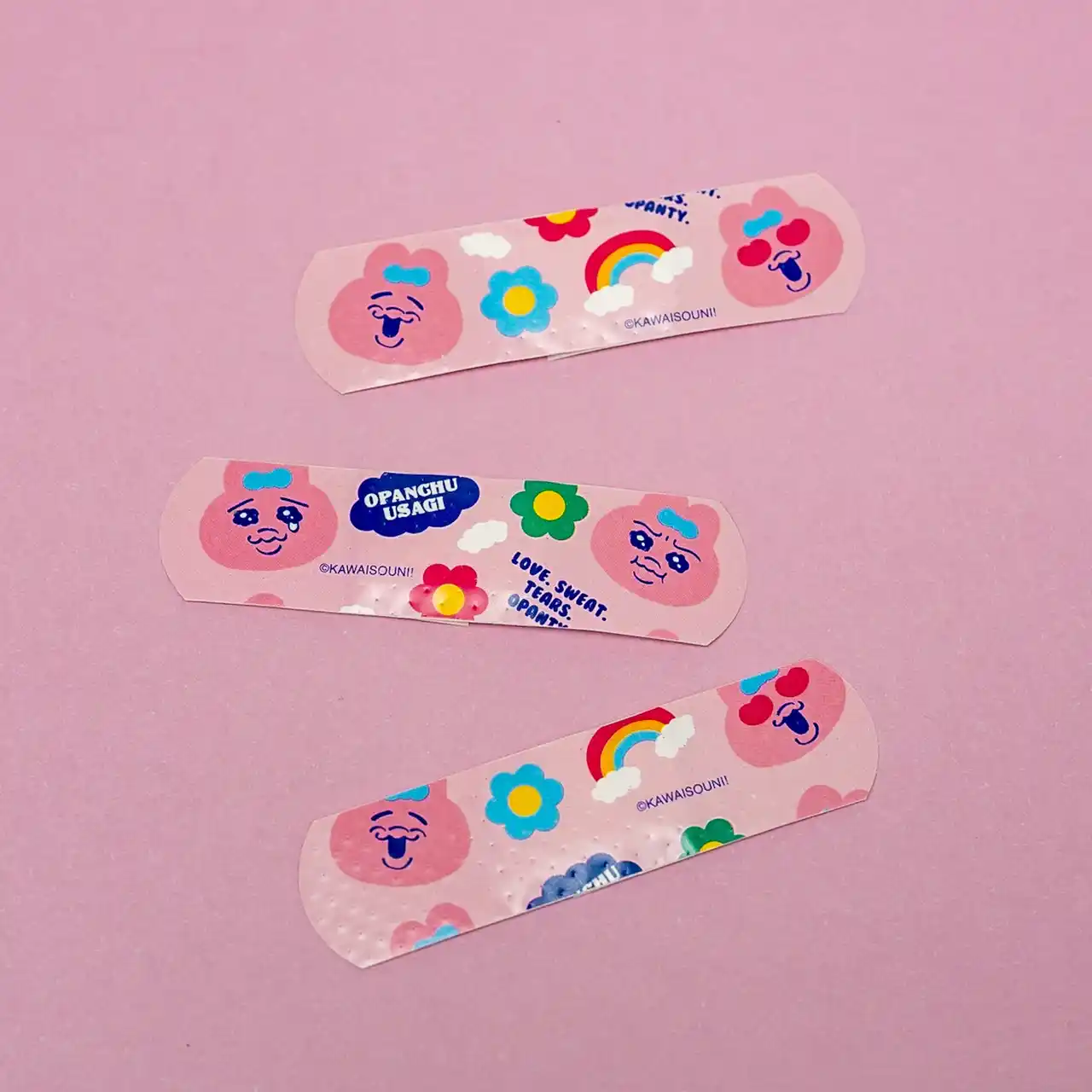 「おぱんちゅうさぎ」の全身がデザインされたダイカット型の絆創膏です。 |