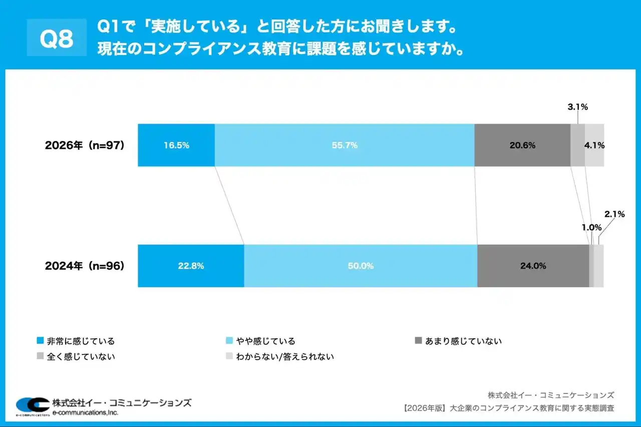 Q8. Q1で「実施している」と回答した方にお聞きします。現在のコンプライアンス教育に課題を感じていますか。 |