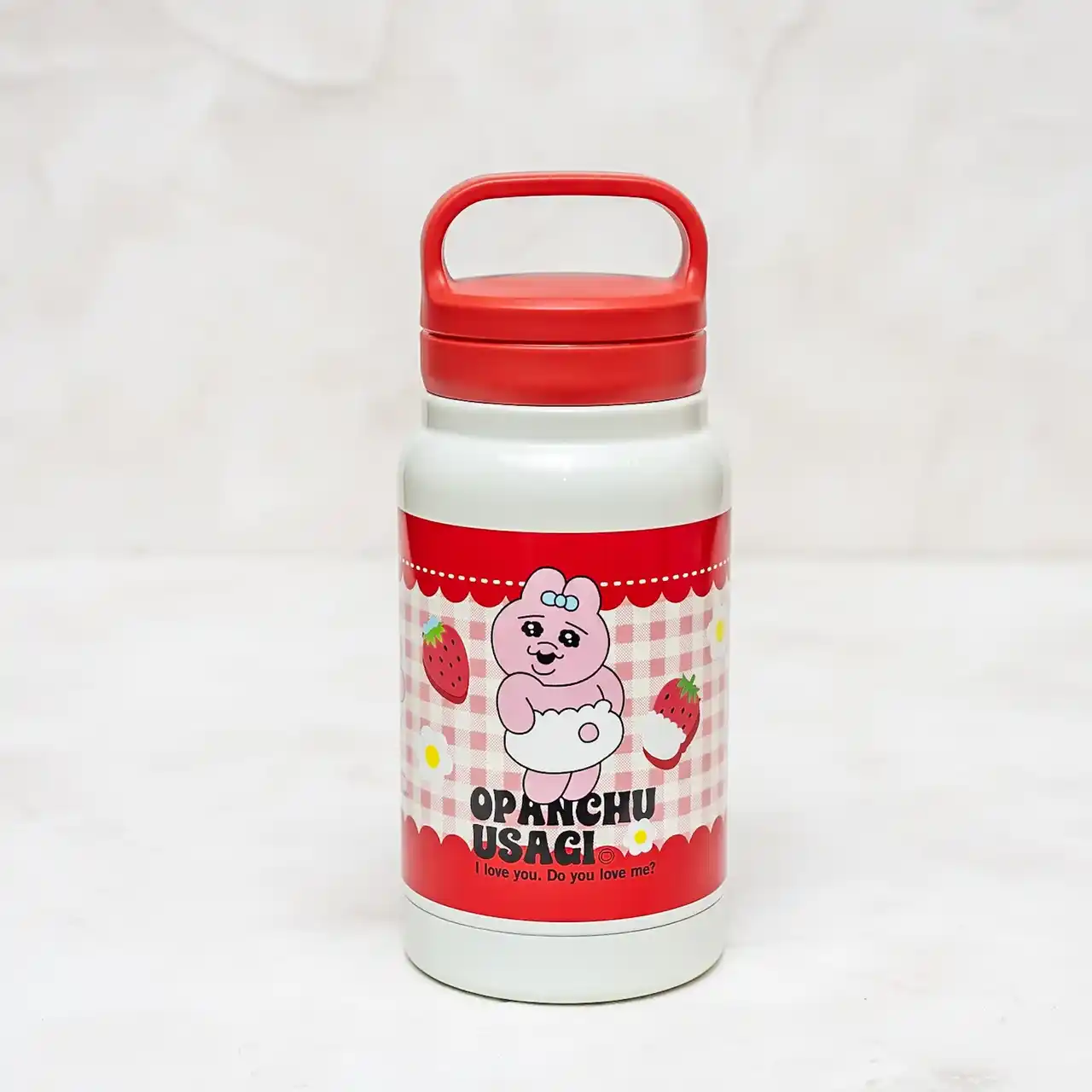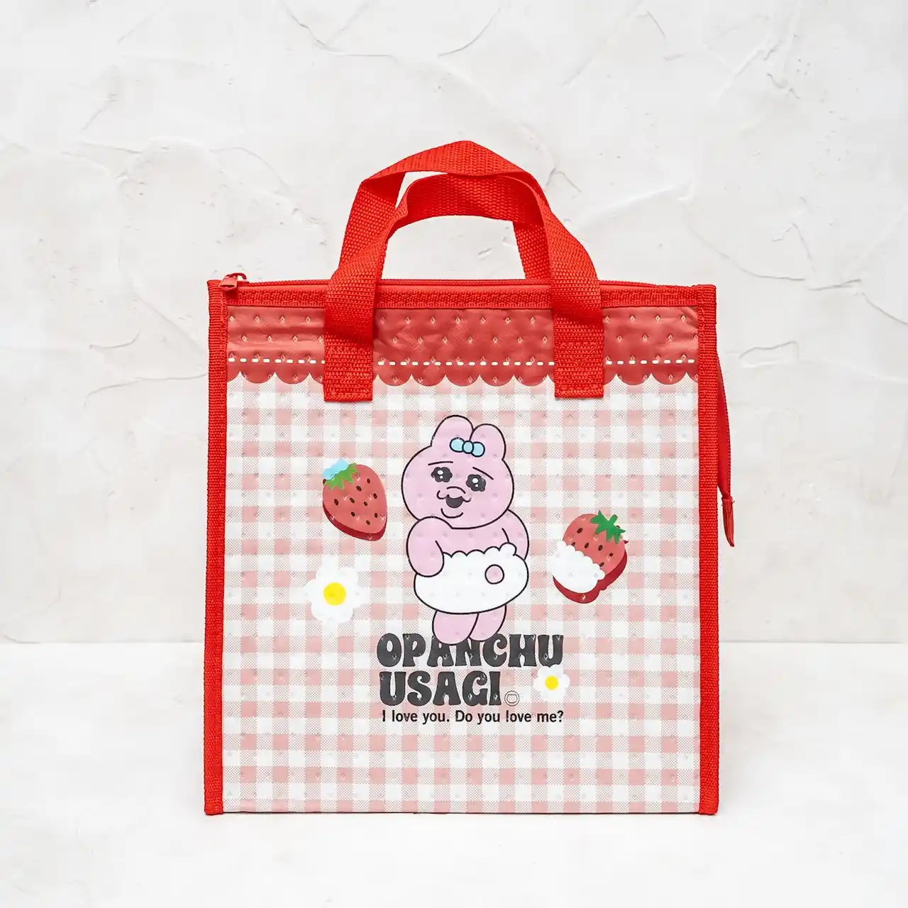 本シリーズは、ピンクと赤を基調としたギンガムチェック柄に、 いちごを抱えた「おぱんちゅうさぎ」が描かれた愛らしいデザインが特徴です。 毎日のお昼ごはんが楽しくなるような、ランチボックスやボトル、バッグなどを展開します。 |